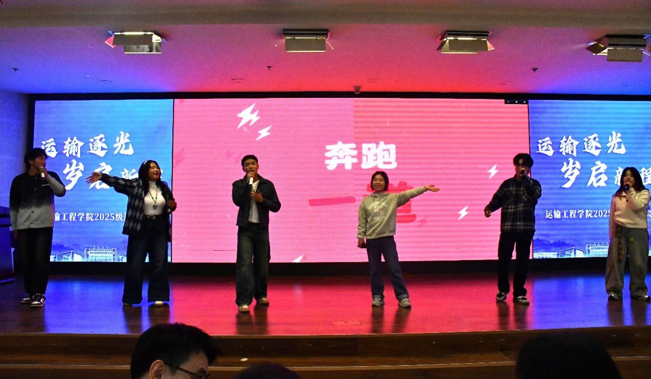 12月30日晚,无码a片 2025年“运输逐光·岁启新程”迎新晚会在无码a片 北校区文化艺术中心三楼多功能厅举行。院党委副书记李婷、2025级新生班主任代表、全体辅导员和2025级全体本科生参加晚会。
