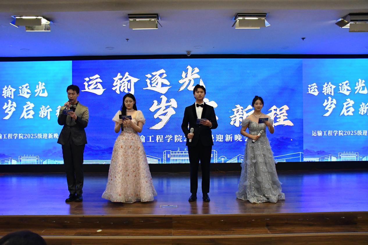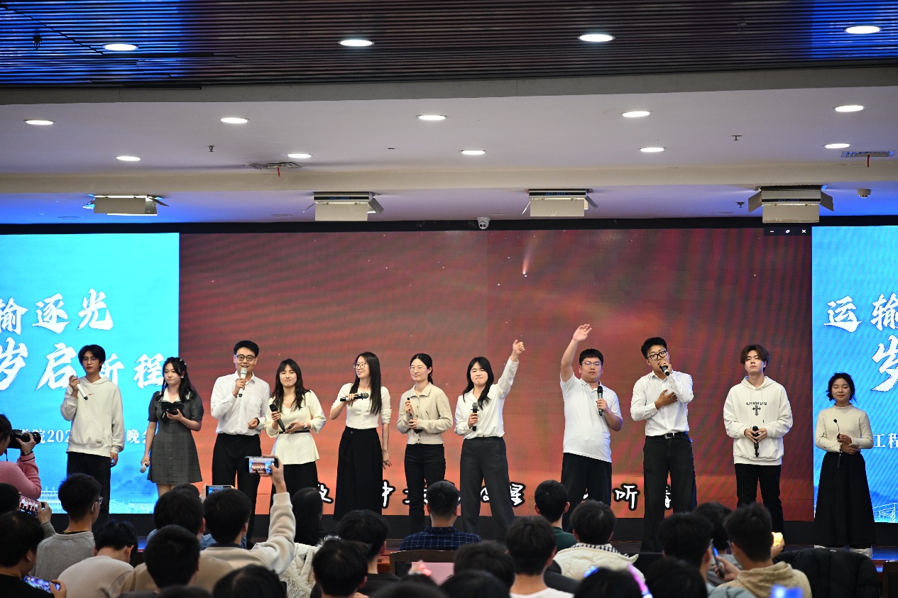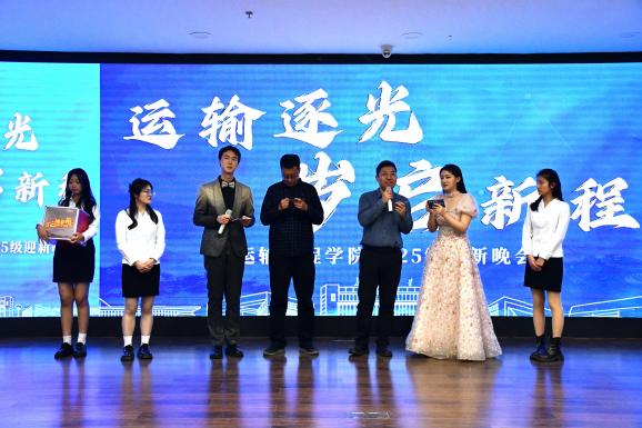 12月30日晚,无码a片 2025年“运输逐光·岁启新程”迎新晚会在无码a片 北校区文化艺术中心三楼多功能厅举行。院党委副书记李婷、2025级新生班主任代表、全体辅导员和2025级全体本科生参加晚会。